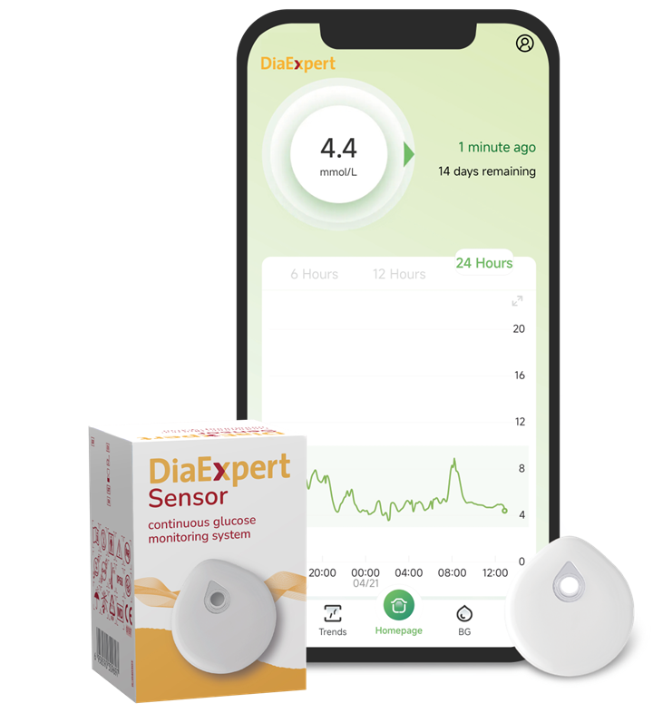 Met de DiaExpert CGM-sensor krijgt u continu inzicht in uw glucosewaarden, zonder regelmatig vingerprikken. (Als de metingen van uw sensor niet overeenkomen met hoe u zich voelt, moet u een vingerprik doen om uw glucose te bevestigen.) Dit maakt het mogelijk om sneller en bewuster te reageren op schommelingen. De sensor en de bijbehorende app zijn eenvoudig te gebruiken, zowel voor u als voor uw zorgverlener. Samen zet u meetgegevens om in duidelijke inzichten, zodat de behandeling beter afgestemd kan worden en u meer grip krijgt op het dagelijks leven.